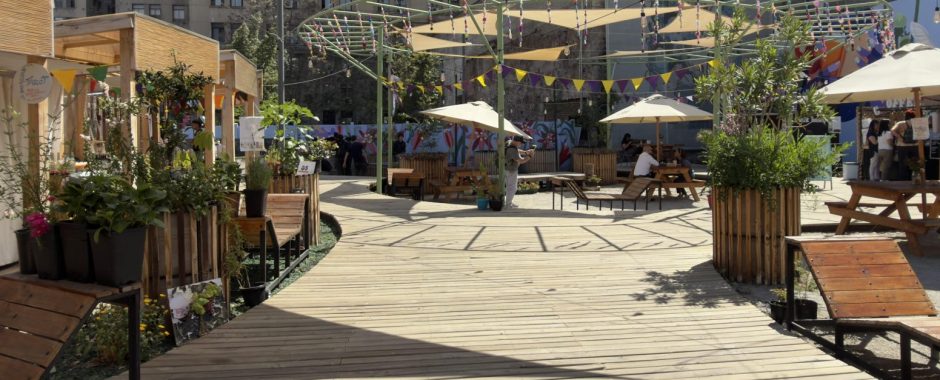 Corresponden a una novedosa intervención urbana, que recupera espacios sin uso y los convierte en una plaza transitoria para el deleite de santiaguinos y visitantes.